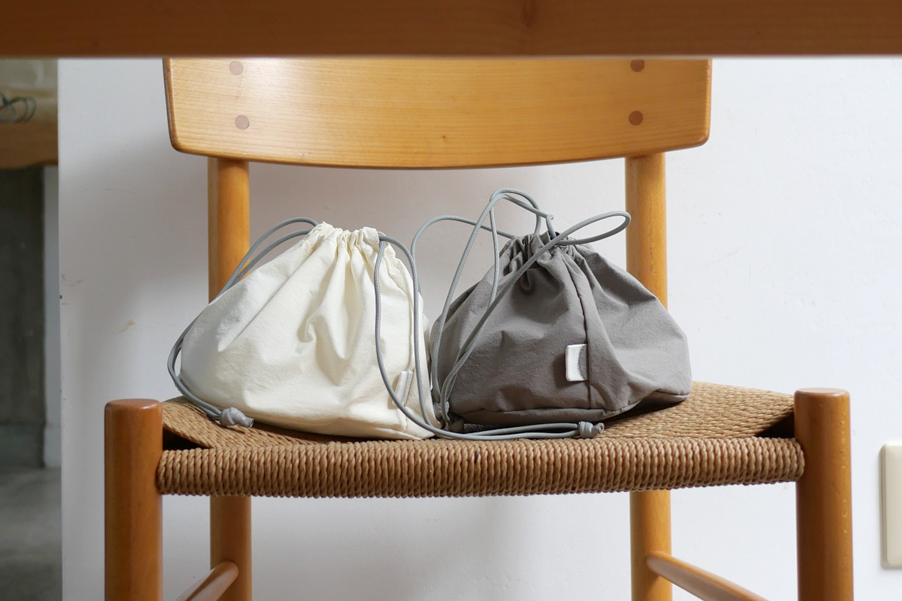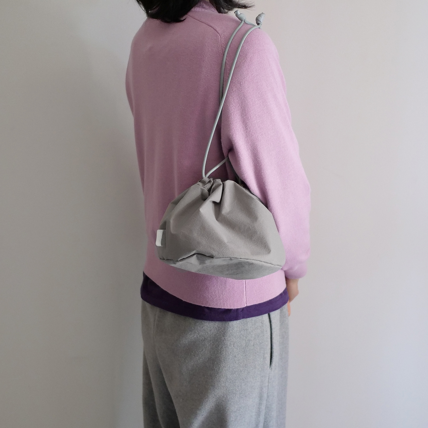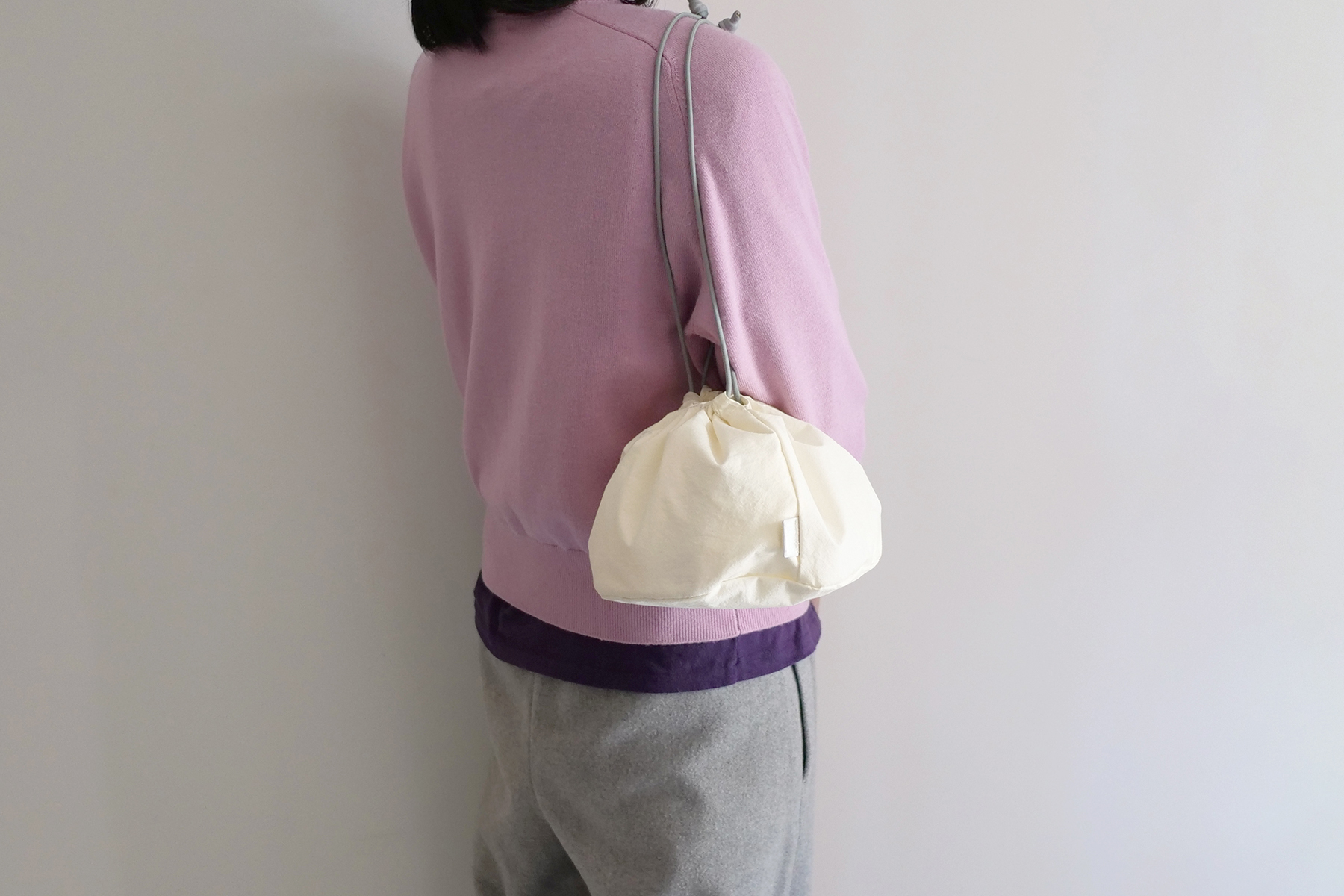 "SHORONPOU"は全体的には大きめで、高さは低めの小籠包フォルム。キュッと絞ればまるで "小籠包"な巾着ポーチ。大きさ的に"肉まん"の声も聞こえてきますが小籠包がモチーフです:)