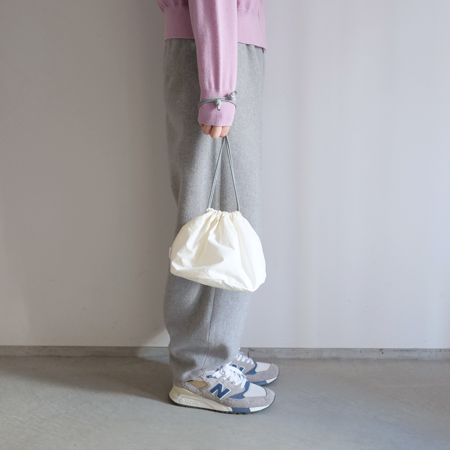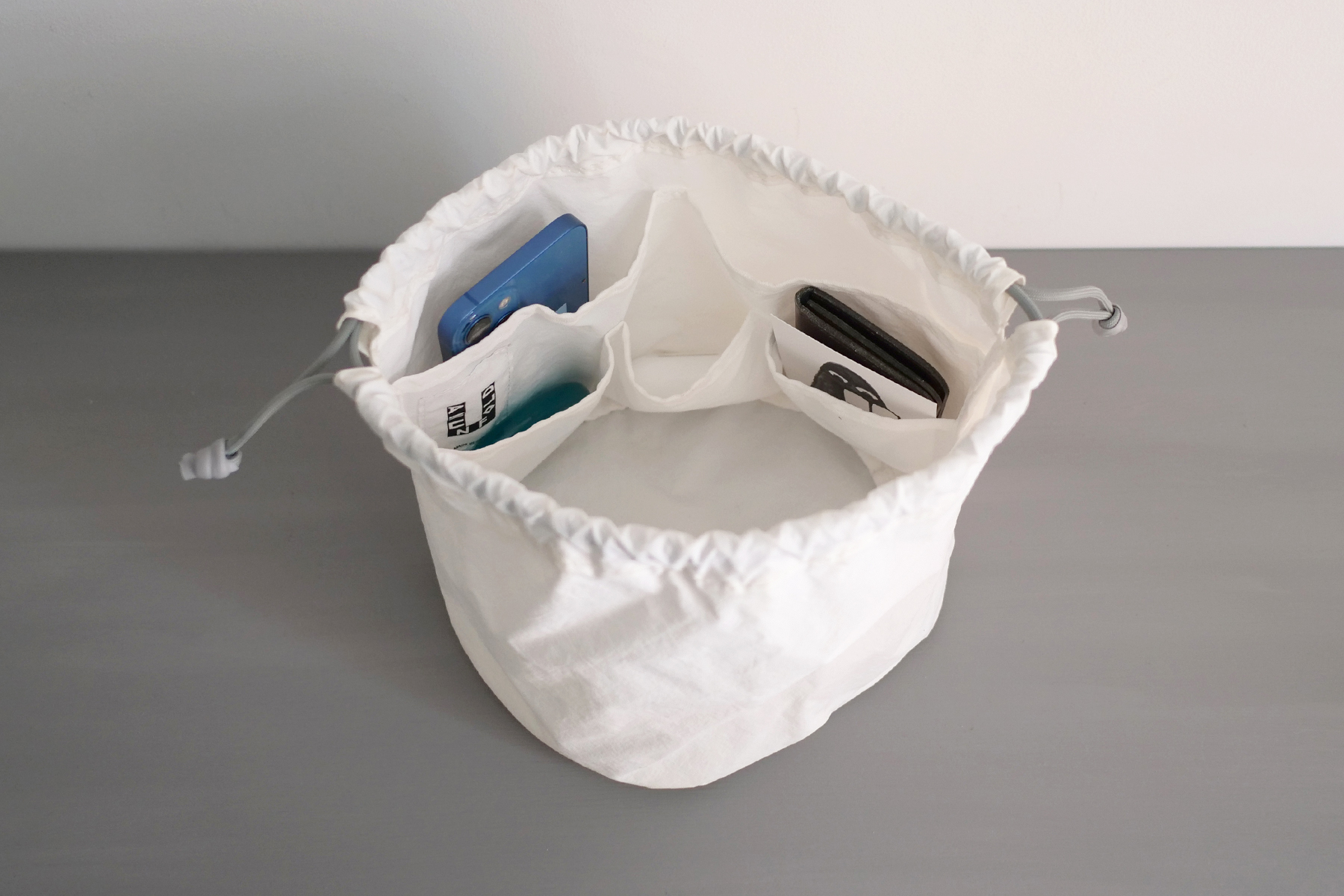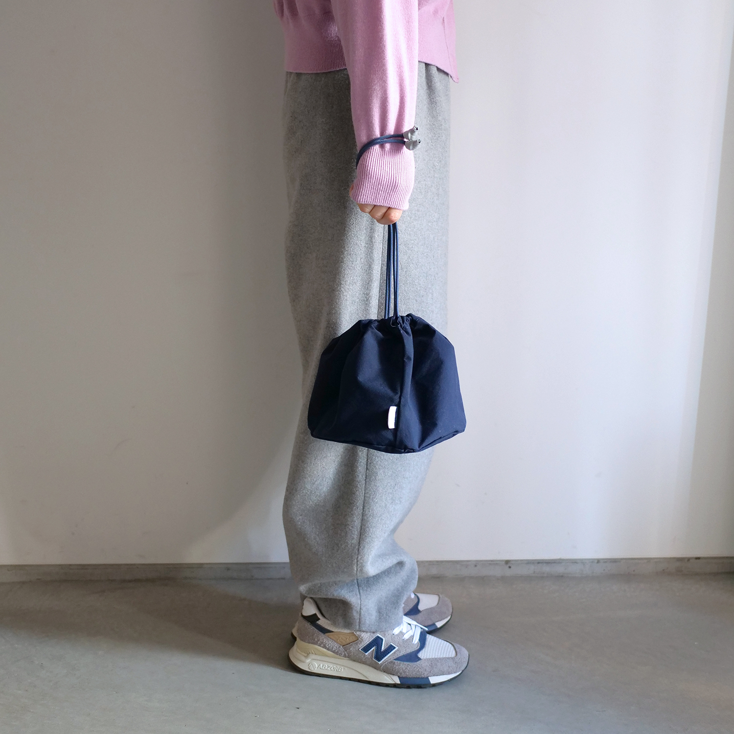 "SHORONPOU"は全体的には大きめで、高さは低めの小籠包フォルム。キュッと絞ればまるで "小籠包"な巾着ポーチ。大きさ的に"肉まん"の声も聞こえてきますが小籠包がモチーフです:)